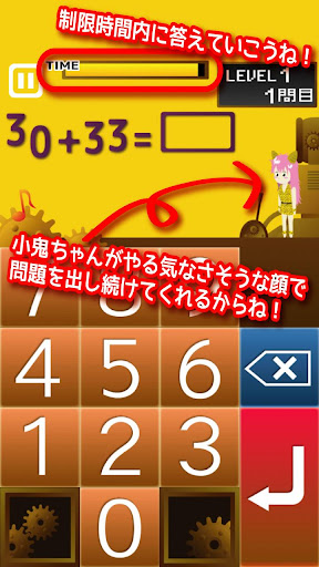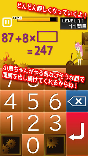 数字を入力して足し算、引き算、かけ算、割り算といった計算問題を解いていきます。