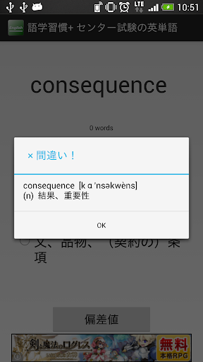 ゲーム感覚で、センター試験の英単語を学習できるアプリです。