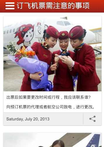 最新机票信息,最低折扣机票,优惠方便又快捷往返程物价机票更优惠,让你省心省力,提供机票资讯,国内旅游,出境旅游等资讯内容,还提供国内机票、特价预约和特价机票,让您买最实惠的机票。另外本软件还带有周边定位功能,用户可以快速寻找到周边的餐厅美食、商场超市、停车服务等信息,让用户更方便的体验移动生活服务平台。