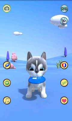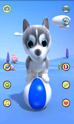 游戏的主角是一只可爱的小狗狗,快来享受它给你带来的乐趣和笑声吧。它特别有趣,会说话,所有年龄段的儿童都会喜欢的。扔飞盘,它会帮你捡回来,喂它吃甜甜的苹果,它能站立在小球上,累了可以让它睡会儿……