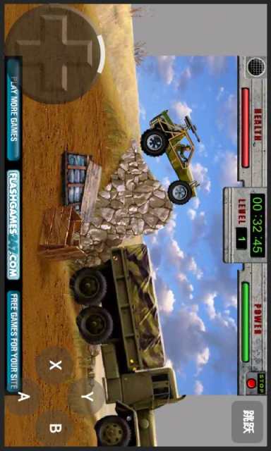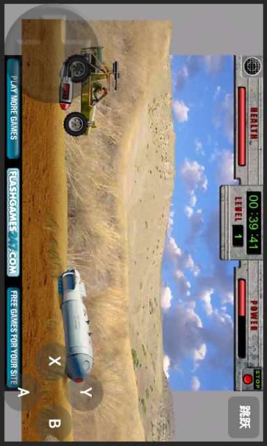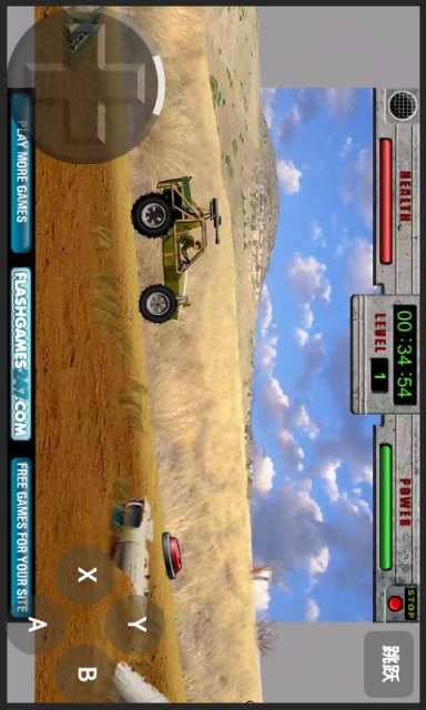 你现在是一名越野战士,驾驶越野战车在战地里穿梭要的限定的时间内顺利到达终点,注意躲开地上的地雷,钣手可以补血,过关后按空格键继续下一关
