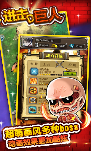 游戏中可以随着级别升高提升战斗力和防御力,也可以派出兵长、三笠等士兵助战,当BOSS出现的时候,还可以呼叫巨人化的艾伦出场!