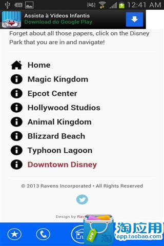 迪斯尼世界地图是一个非常有用的应用程序,显示地图的沃尔特迪斯尼世界度假区。它包括一个度假胜地全图,魔术王国,未来世界,动物王国地图,好莱坞影城地图,台风泻湖地图,暴雪海滩地图,和两个迪士尼市中心地图。