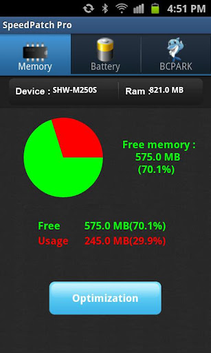 BCPARK SpeedPatch的手機版本可以通過記憶體最佳化和電池的完全充電最大限度增加使用時間,而且還是包含所有提升速度功能的程式。