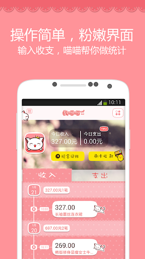 简洁的的记账模式,超萌粉嫩的美女专属界面。