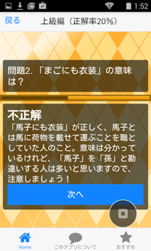 短い時間で楽しみながら勉強できる上級編、中級編、初級編に分かれています。「知っているつもりの意味が、実は違った!」と驚きながら、このアプリでしっかり覚えてください。