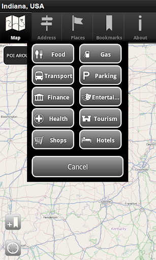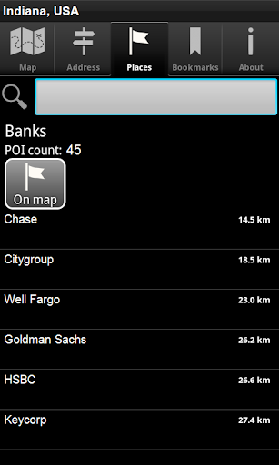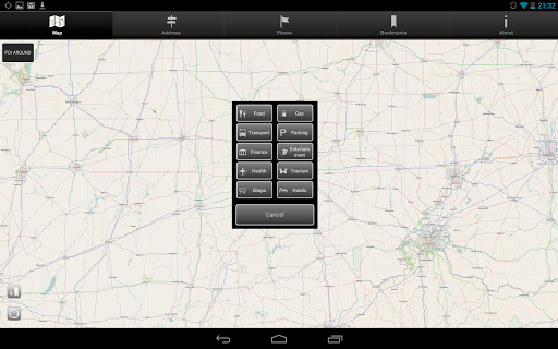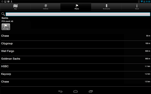 •通過選擇地圖區域,你可以圍繞任何一點搜索在地圖上找到離您最近的興趣點(公園,咖啡館,銀行和許多更多)