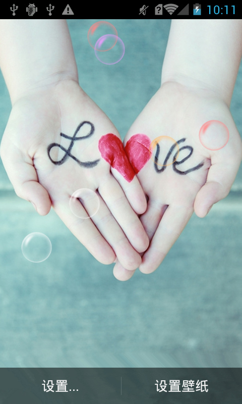 壁纸自带了梦幻泡泡,心形以及星星的特效