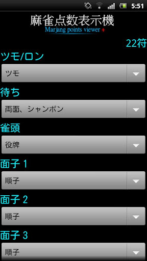 符、飜、親/子を選択すると、上がり点を表示します。