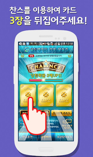 1) 매일 매일 공짜 충전되는 찬스로 카드 세장을 뒤집어 주세요!