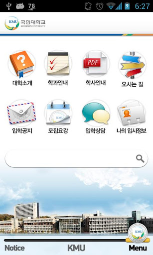 국민대학교 입학 홍보 공식 어플리케이션입니다. 변화를 두려워하지 않는 ‘국민’, 기회를 놓치지 않는‘국민’, 도전을 멈추지 않는 ‘국민’. 이것이 바로, Creative Kookmin Univ. 변화 속에 기회를 찾아 도전하는 국민대학교에서 여러분의 꿈을 펼쳐 보시기 바랍니다.