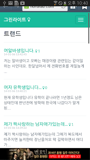 키워드 : 그린라이트, 마녀사냥, greenlight, 연애, 사랑, love, 남자, 여자, 친구, 작업, 헌팅, JTBC, 미팅, 소개팅, 썸남, 썸녀, 훈남, 훈녀, 흔남, 흔녀, 고민, 궁금증, 상담, 썸