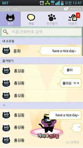 깜장고양이 까미 -패러디 카카오톡 테마 (강남스타일) 무료 - 4.2.2 버전에 맞추어 제작되었음.