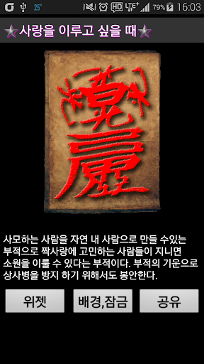 * 부적의 위젯등록 : 부적을 위젯으로 등록하여 휴대폰에 항상 소지하고 다닐 수 있습니다.