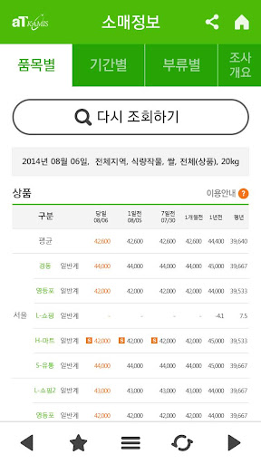 1. 농수산물의 일일, 주간, 월간, 연간 가격정보를 도표 및 그래프로 사용자가 알기 쉽게 제공합니다.