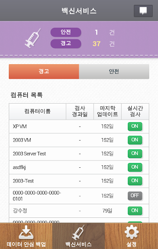 - 컴퓨터별 검사 경과일 / 마지막 업데이트 / 실시간 검사 여부 조회