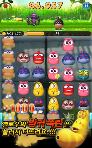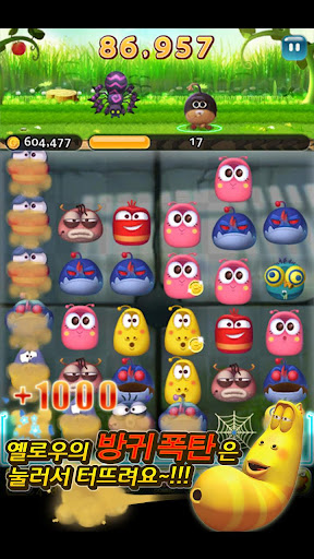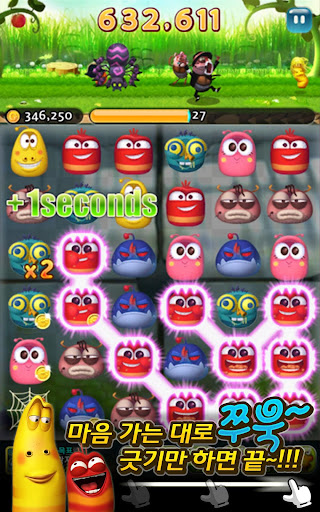 같은 라바를 3개 이상 이으면 라바들이 소시지를 맛나게 먹고, 행복한 표정으로 사라진답니다~(^-^)b