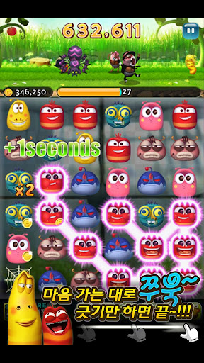 라바를 10개 이상 길게 연결하면 게임 시간이 1초, 2초, 3초~~ 길게 이은 만큼 늘어나요!!!