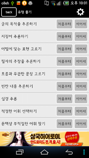 수능 독해 앱은 많지만 유형별 풀기를 지원하는 앱은 드뭅니다. 만점도전은 독해 유형별로 풀어볼 수 있습니다.