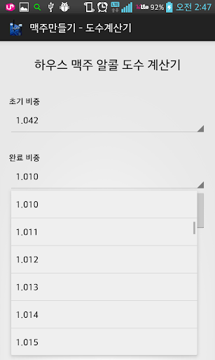 ★ 하우스 맥주 제조시 1차발효과정에서 비중을 이용하여 맥주의 알콜도수를 계산하는 앱입니다.