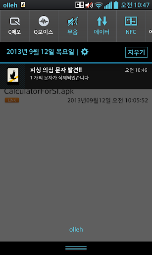 모바일 가드는 수신된 문자 메시지에 포함된 URL 경로를 검사하여 APK파일 경로가 포함되어 있거나 악성 앱으로 의심되면 알려주고 삭제 합니다.