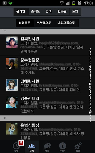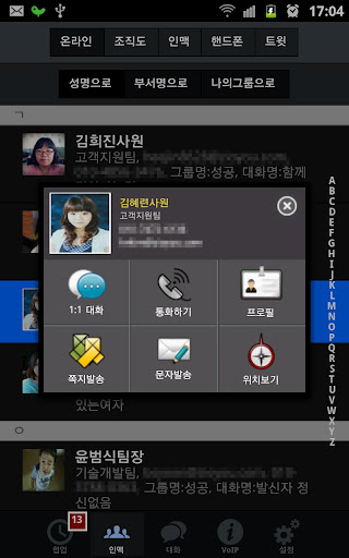 - 핸드폰 주소록 확인 및 지오유클라우드 Sync기능
