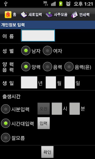 새로입력 : 生年月日時만 입력하면 바로 사주명식을 뽑을 수 있습니다.