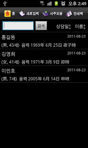 사주모음 : 입력사주를 폰 DB에 저장하여, 검색/ 정렬/ 수정/ 백업 할 수 있습니다.
