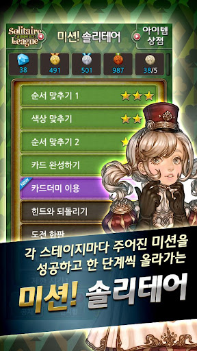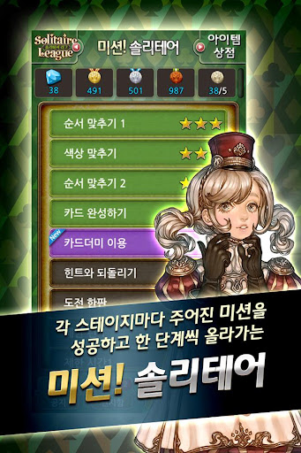 - 주어진 미션을 성공하고 한 단계씩 올라가는 ▶미션! 솔리테어◀