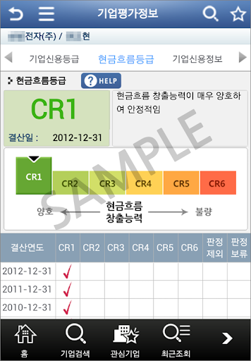 신용등급, 현금흐름등급, 소송정보, 행정처분정보, 휴폐업정보 제공