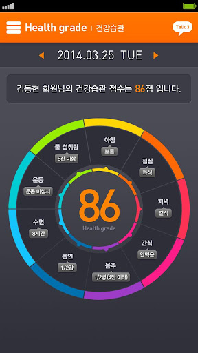 - 9항목 / 식습관(아침, 점심, 저녁, 간식), 음주량, 흡연량, 수면량, 물섭취량, 운동유무 체크