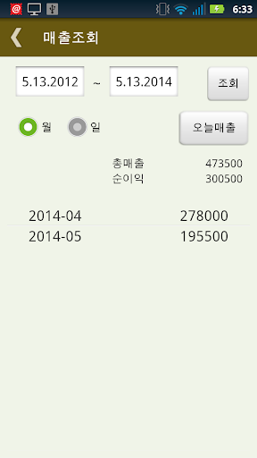 POS 기계가 없는 소점포 , 노점상을 대상으로 정산 도우미 역할을 합니다. 하루 기준으로 매출액과 순이익을 자동으로 계산하고, 상품별 판매수와 매출액을 상세조회 할 수 있습니다. 일월 , 월별 조회도 가능합니다. 기록된 데이터를 엑셀로 변환하여 사용자 이메일로 보내어 어디에서든 확인 및 관리 할 수 있습니다. 핸드폰 초기화나 새로운 핸드폰으로 변경 시 기존에 기록된 데이터를 그대로 사용하실 수 있도록 백업과 복구 기능을 지원합니다.