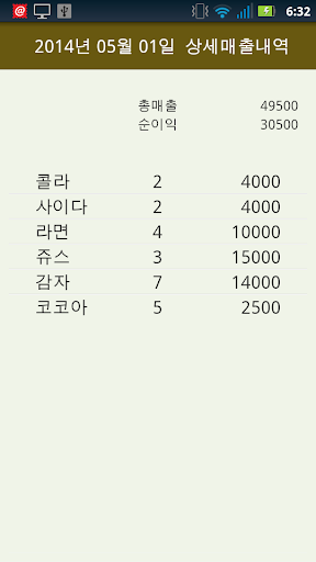 소점포, 노점상 용 판매 관리, 매출 관리 어플입니다.