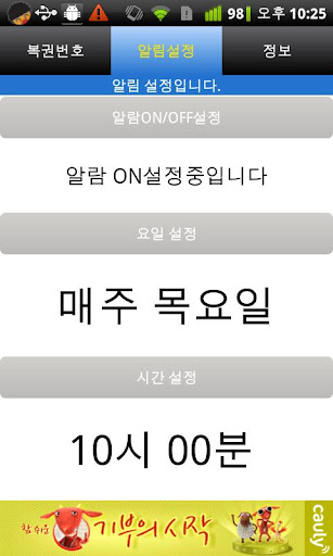 당첨번호를 알림으로 설정 할 수 있습니다.