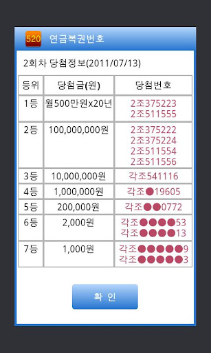 TAG : 필수 앱, 대박 번호, 로또 1등 , 1등 번호, 당첨 결과, 로또 당첨,