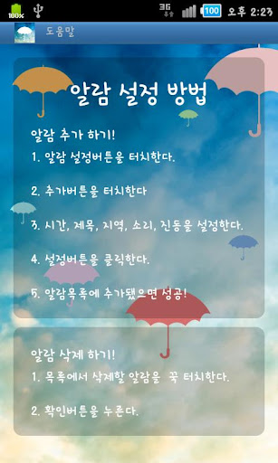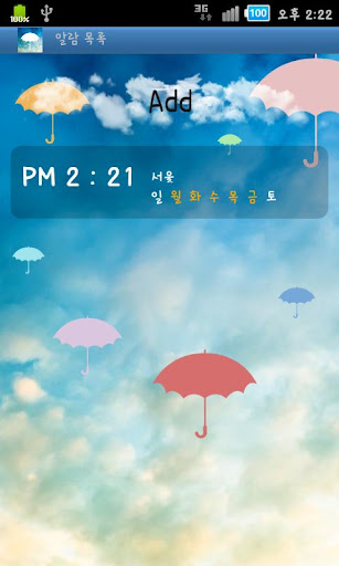 우산이 필요해!는 설정한 시간에 설정한 지역의 날씨와