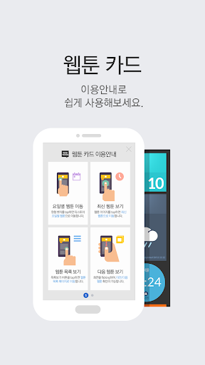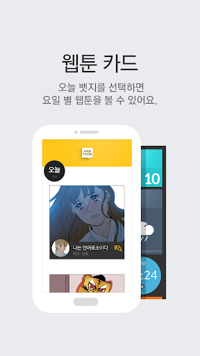 요일별, 장르별 웹툰 및 연재만화를 카드 한장으로 편하게 즐기세요.