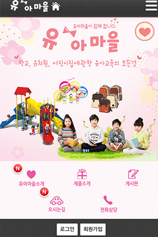 유아마을 앱은 유아원, 유치원, 초등학교 등 어린이들의 꿈과 재미난 교육용품을 다양하게 소개하고 있습니다.