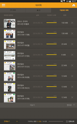 중앙일보를 비롯한 신문 5종 및 월간중앙, 포브스, 쎄씨, 엘르 등의 잡지 15종을 포함한 중앙미디어네트워크의 모든 신문과 잡지(총30종)를 PC나 다양한 스마트기기로 언제 어디서나 편하게 구독할 수 있습니다.