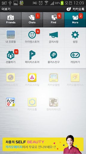 카카오톡 실행 후 하신 후 상단에 더보기 클릭