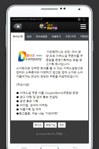 다와컴퍼니는 순천, 여수,광양 최초 지역소셜 쿠폰어플 쿠폰밤을 운영기획하는 토탈 광고기획 회사입니다.
