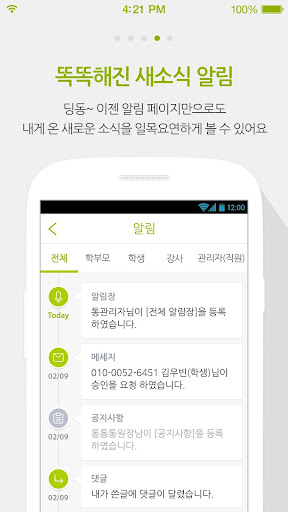 - 학생/부모님, 선생님/원장님과 다양한 방식으로 소통하고, 학원 소식을 공유할 수 있어요.