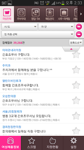 - 주부 / 영업.TM / 매장관리 / 사무,마케팅 / 서빙,주방 / 강사,교사