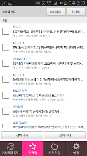- 마음에 드는 알바정보를 스크랩 하여 관리