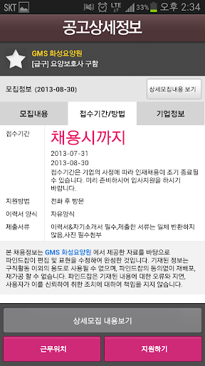 - 알바지원 전 화면에서 근무지위치 및 인근 지하철역 등의 위치정보 확인 가능