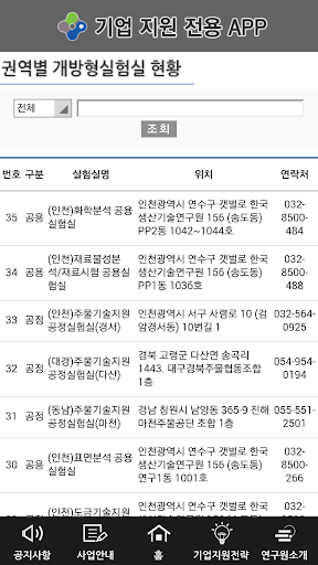상담하기/개방형실험실 검색/연구장비현황 검색/연구인력현황 검색 등