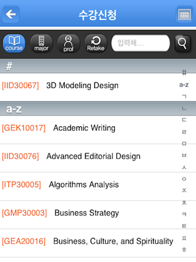 한동대학교 모바일 수강신청 버젼1.0.0 입니다.