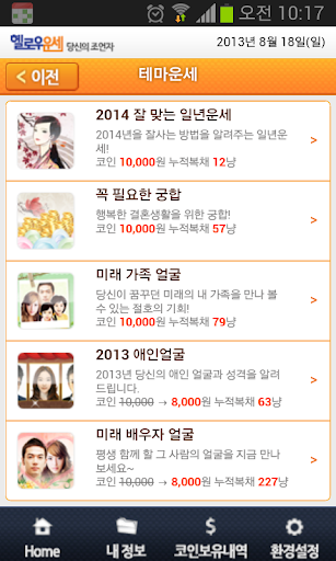 매일 출석체크를 통해 적립된 코인으로 유료운세를 이용하실 수 있습니다.