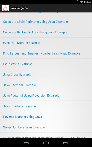 Brings you the collection 100+ Java programs Packed into app, which are very useful for anyone who wants to learn Java Programming. This app helps you refer to a great collection java programs on the go and Helps you improve Logical thinking of various problems related to Programming .Its an Application to give source code and output for various Java Programs.