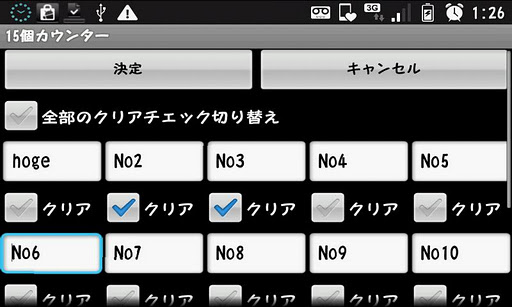有15個櫃檯。點擊計數器計數,滑下的計數 down.Minimum值是0。您可以清除的價值或更改標籤從菜單按鈕。